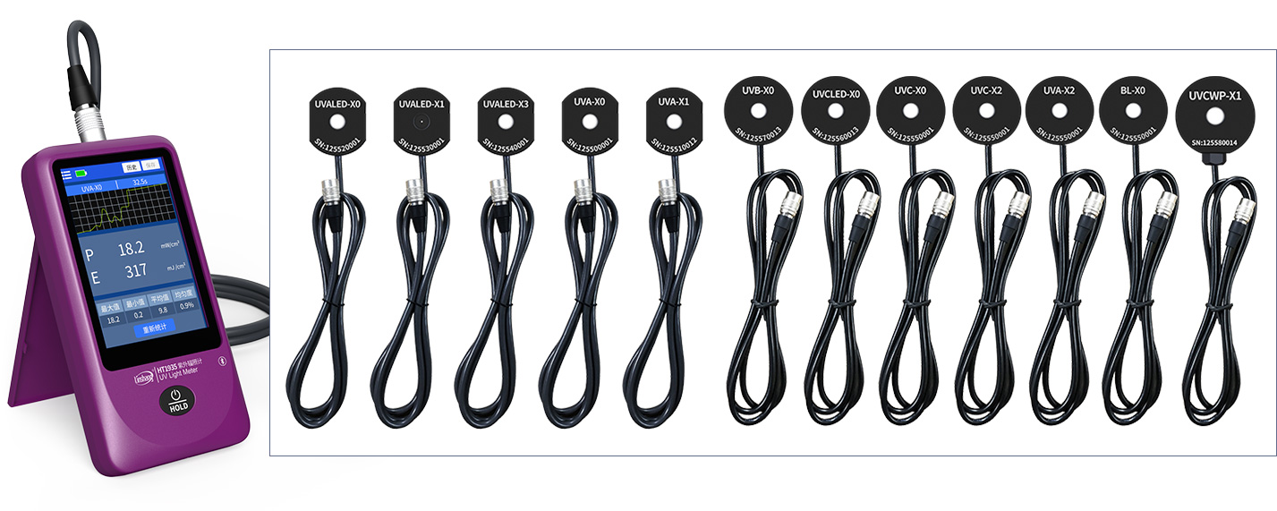 主机可智能识别探头的型号,可自由搭配12款紫外线探头使用,根据实际需求选择合适的探头即可。