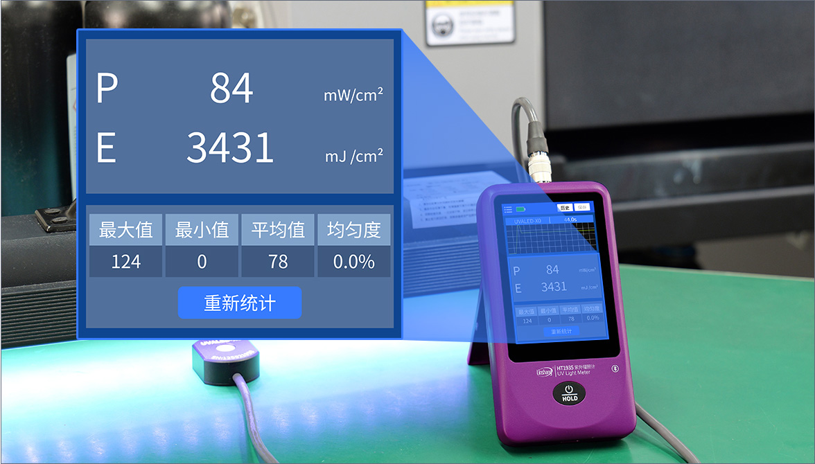 测量时可动态显示功率曲线,方便实时监控和分析各个波段紫外辐照强度的变化。